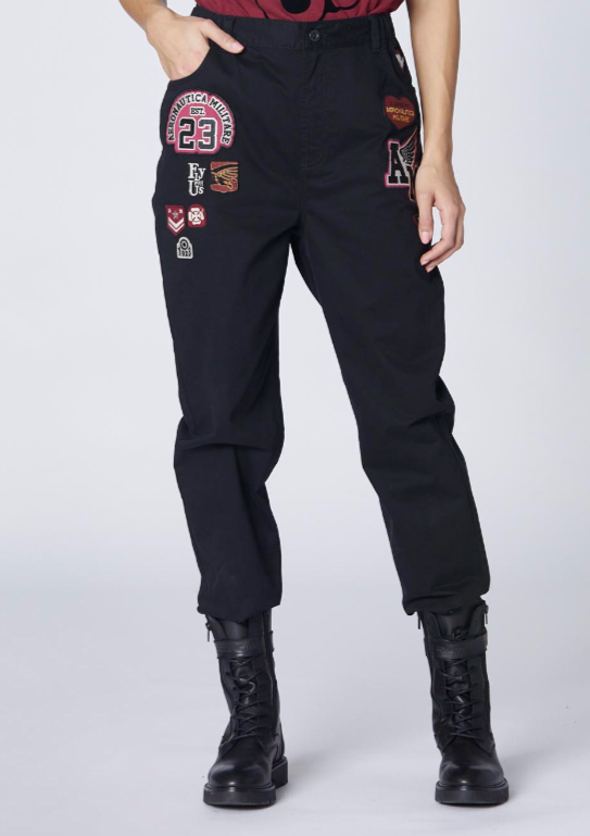 Эти женские брюки с пятью карманами, изготовленные из эластичного хлопка, идеально подойдут тем, кто любит рисковать. Одежда украшена многочисленными нашивками, которые придают ей особый стиль и смелость. Эти брюки сочетают в себе удобство и стиль, имеют идеальный крой и неповторимый внешний вид, идеально подходят для того, чтобы выразить свою индивидуальность, смелость и оригинальность.