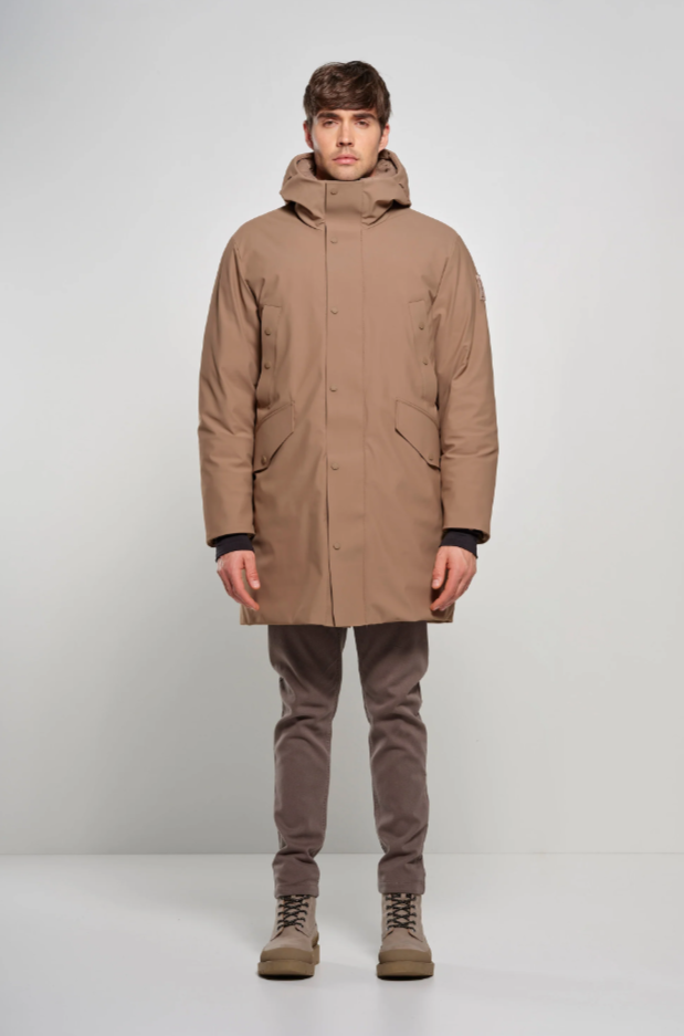 Мужская длинная парка гарантирует полную защиту от ветра и дождя благодаря водонепроницаемой ткани и ветрозащитной технологии. Прямой крой обеспечивает комфорт в любой ситуации, а двойной внутренний капюшон из нейлона создает изолирующий барьер, сохраняя современный лаконичный вид. Внутренние манжеты из лайкры плотно прилегают к запястьям, предотвращая попадание холодного воздуха. Утеплитель Primaloft® PowerPlume, изготовленный из переработанных материалов, по своим свойствам напоминает пух, обеспечивая тепло и лёгкость. Утеплитель средней плотности сочетает в себе теплоизоляцию и практичность, что делает эту одежду подходящей как для холодных дней в городе, так и для прогулок на свежем воздухе.