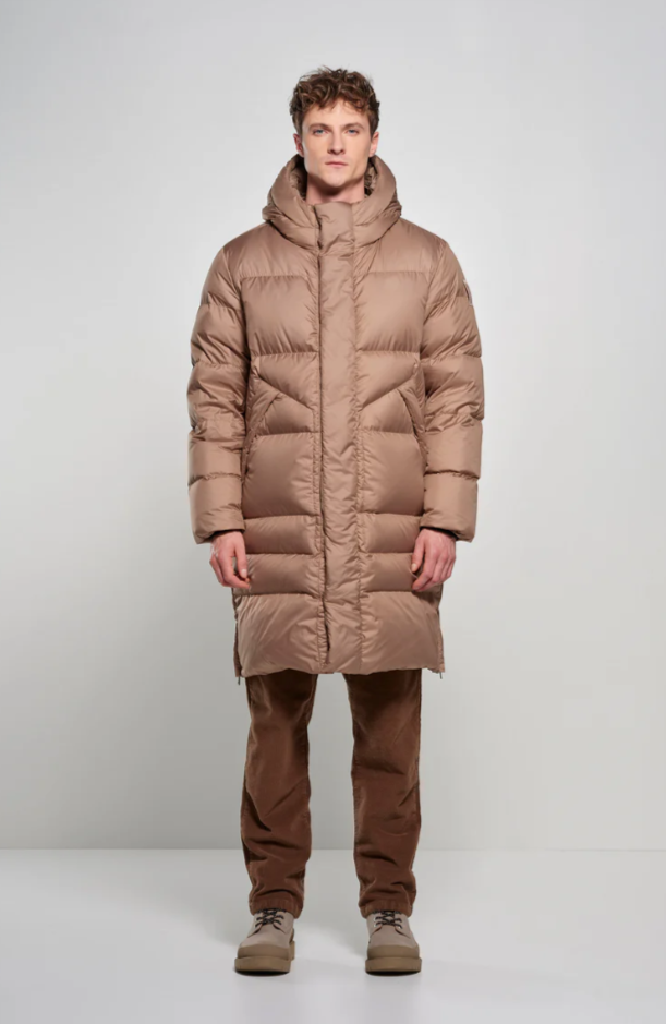 Мужской длинный пуховик сочетает в себе элегантность и функциональность для зимних дней, обеспечивая комфорт и стиль в любой ситуации. Наполнитель из натурального гусиного пуха, состоящий на 90 % из пуха и на 10 % из пера, с плотностью 650 гарантирует оптимальное тепло в зимние холода. Полуматовая микропористая отделка придает изделию изысканный вид, а широкий крой подчеркивает силуэт и позволяет носить пуховик с другими вещами. Несъемный капюшон обеспечивает дополнительную защиту от ветра и холода, сохраняя при этом элегантный внешний вид. Горизонтальные швы и увеличенная длина, доходящая до колена, обеспечивают полную защиту и комфорт.