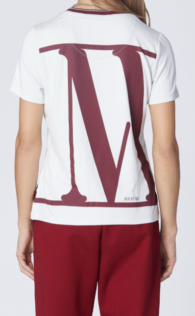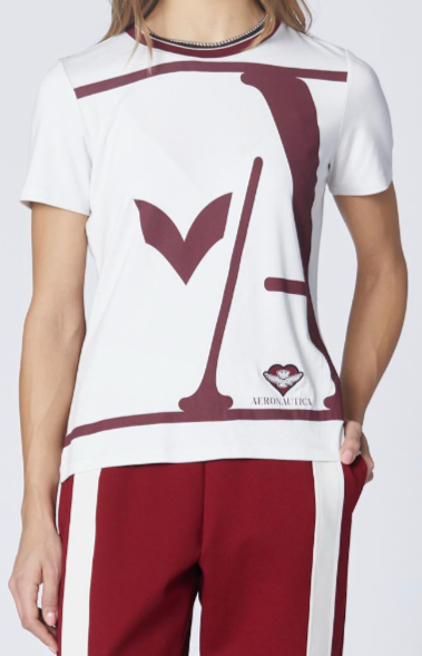 Эта женская футболка из мягкого эластичного трикотажа с плетеным воротником имеет выразительный принт на передней и задней сторонах.