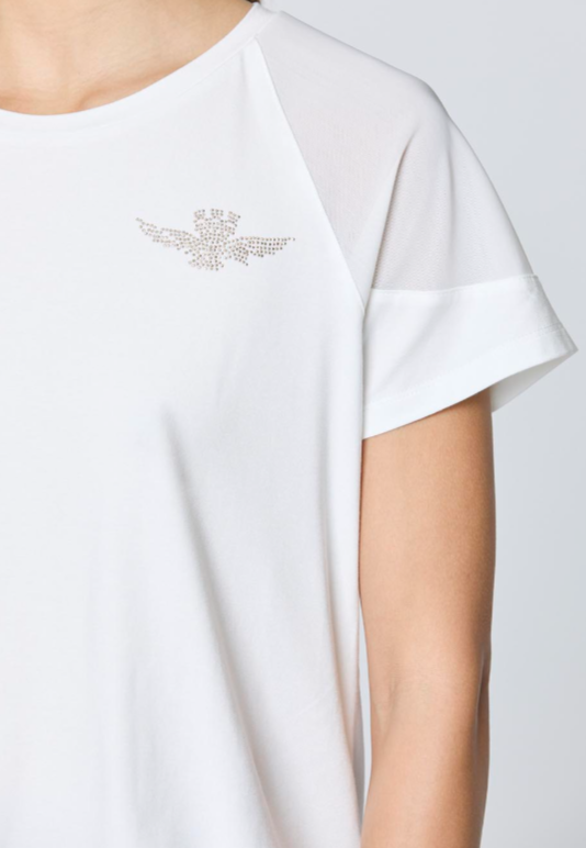 Это трикотажное изделие итальянского производства сочетает в себе мягкую, эластичную вискозу и элегантные отвороты на рукавах, придающие женственный и изысканный вид. Эластичный край подчёркивает свободный силуэт и обеспечивает комфортное ношение. Сверкающая деталь в виде эмблемы орла придаёт изделию аутентичность и блеск, превращая его в незаменимую вещь в вашем гардеробе.