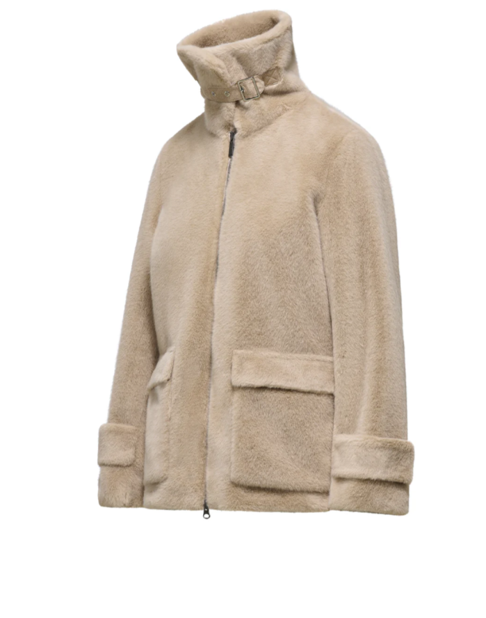 - Широкий и высокий воротник защищает от ветра и придает куртке утонченный вид.